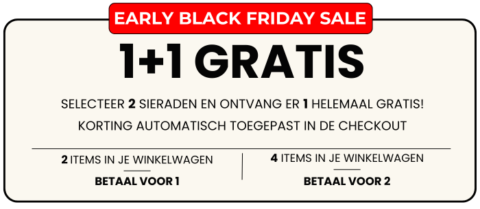 Early Black Friday - 1+1 Gratis! Deze geliefde designs verdwijnen voorgoed. Shop nu luxe sieraden voor elke dag, voordat ze weg zijn.