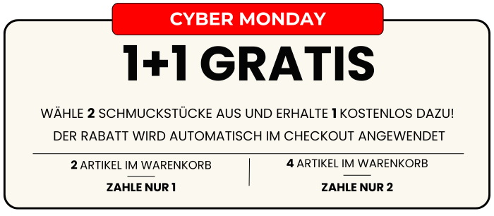 CYBER MONDAY - 1+1 Gratis! Diese beliebten Designs sind für immer verschwunden. Kaufen Sie jetzt luxuriösen Alltagsschmuck, bevor er vergriffen ist.